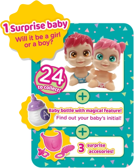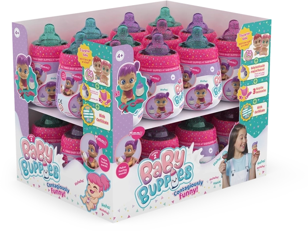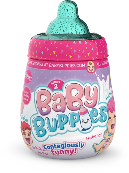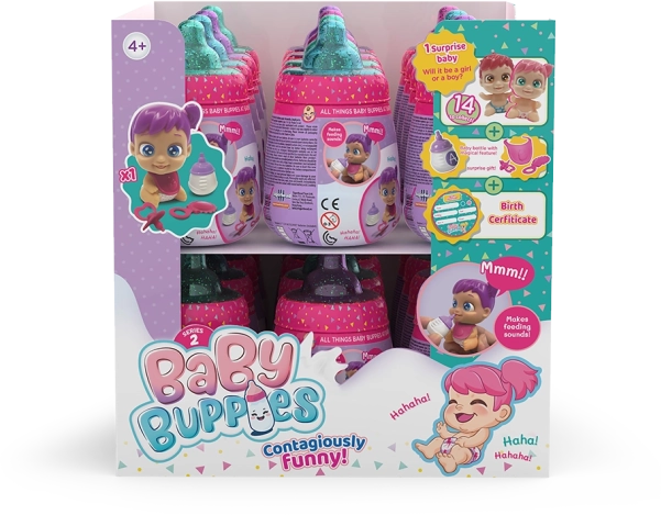 Baby Buppies zijn leuke verzamelpoppen in een stijlvolle verpakking die op een flesje lijkt. Elke baby kan realistisch brabbelen en lachen, waardoor het spel vol emotie en plezier zit. Dankzij de vrolijke kleuren en het schattige design worden ze al snel favoriet bij kinderen.