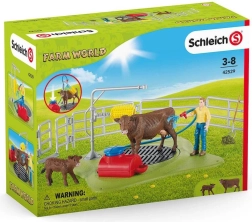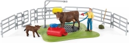 De set bevat alles wat je nodig hebt: figuren van een koe, een kalf en een boer, plus accessoires zoals een slang, een pomp met sproeifunctie, een koeborstel, wilgenhekken en een poort. De hoogwaardige, met de hand beschilderde details die typisch zijn voor SCHLEICH prikkelen de fantasie en ondersteunen rollenspel met een boerderijkarakter.