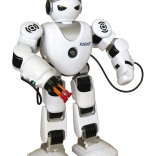 Robot FOBOS is een leuke, robuuste en eenvoudig te bedienen metgezel voor kleine en grotere ontdekkers. Na het inschakelen lichten zijn ogen op, klinken kosmische geluiden en begint de robot Tsjechisch te spreken. Met de infrarood afstandsbediening stuur je hem de actie in, of je probeert je eerste programmeerstappen met hem uit – hij onthoudt tot 50 opdrachten en speelt ze ook zonder afstandsbediening af.