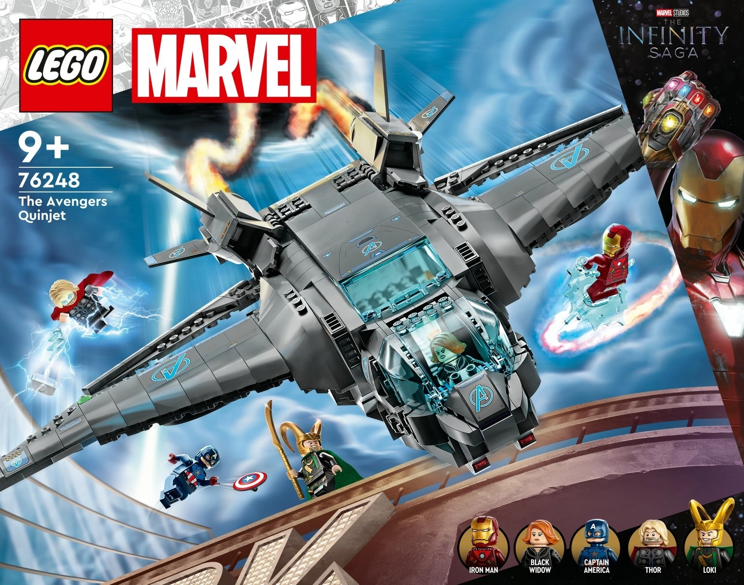 • Gedetailleerd ruimteschip – Het model Avengers Quinjet Straaljager (76248) van LEGO® Marvel is een authentieke replica van het superheldenvliegtuig uit de Marvel-films • Bekende personages – Bevat 5 iconische minifiguren: Black Widow, Thor met zijn hamer, Iron Man, Captain America met zijn schild en Loki met zijn scepter • Bouwen, spelen en neerzetten – Deze gedetailleerde replica van de beroemde Quinjet-straaljager heeft een te openen cockpit, ruimte voor passagiers en een achtercompartiment, evenals intrekbaar landingsgestel en verstelbare vleugels • Cadeau voor Marvel-fans – Het bouwbare Quinjet-straaljagermodel is een indrukwekkend en blijvend cadeau voor een verjaardag, Kerstmis of elke andere gelegenheid voor kinderen vanaf 9 jaar • Epische luchtavonturen – De Quinjet-straaljager is met uitgeschoven wielen en neergeklapte vleugels meer dan 14 cm hoog, 34 cm lang en 35 cm breed • Optionele standaard en stickers – Het model bevat een afneembare displaystandaard en 2 stickervellen, zodat kinderen de Quinjet kunnen versieren met Avengers- of S.H.I.E.L.D.-logo’s • Interactief digitaal bouwen – De LEGO® Builder app met bouwinstructies biedt intuïtieve zoom- en draaifuncties, zodat kinderen het model kunnen visualiseren terwijl ze bouwen • Nog meer plezier – Het uitgebreide assortiment onderling combineerbare LEGO® Marvel verzamelsets inspireert jonge bouwers met innovatieve functies en onbegrensde speelmogelijkheden • Kwaliteitsgarantie – LEGO® onderdelen voldoen aan strikte industrienormen voor kwaliteit, waardoor ze consistent en compatibel zijn en stevig op elkaar passen • Veiligheid voorop – LEGO® onderdelen worden op de grond laten vallen, verhit, verpletterd, gedraaid en geanalyseerd om te garanderen dat ze voldoen aan strenge internationale veiligheidsnormen