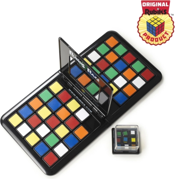 Het Rubiks racespel brengt vlotte fun en vriendschappelijke rivaliteit in elk gezin of op elk feestje. Het spel werkt simpel: schud de speciale kubus die het doelpatroon genereert en herschik vervolgens zo snel mogelijk de tegels op je raster. Degene die als eerste correct het midden 3×3 volgens het getoonde patroon legt, wint.