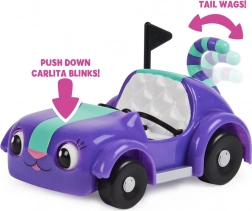 Autootje Carlita is half kat en half auto. Op de stoelen passen Pandy en nog een ander figuurtje uit Gabby's Magisch Huis. Rijd met Carlita en ze zal met haar staart kwispelen. Druk op de motorkap en ze knippert met haar ogen. Druk op de linker- en rechterkant zodat ze naar links en rechts kijkt. De set bevat het autootje, een Pandy-figuurtje, een picknickkleed, een koelbox en een verrassingsdoosje. Geschikt vanaf 3 jaar.