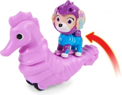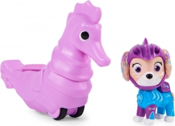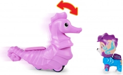 Maak kennis met de figuur Coral uit de Aqua Pups-serie, geïnspireerd op Paw Patrol. Coral, een half zeemeermin, draagt een kleurrijk pak en helm en haar hoofd is beweegbaar. De set bevat ook een zeepaardje waarop Coral kan rijden.