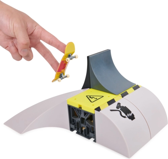 Bouw je eigen mini-skateboardpark met de Xconnect-set Hoge Spanning. Stel combinaties samen met verschillende ramps en obstakels om nieuwe tricks te leren. Bevat: 1 Tech Deck fingerboard, 1 rechthoekig paneel, 1 bochtramp, 1 oprijramp, 1 omgekeerde oprijramp, 2 liggers, 1 grote oprijramp, 2 kleine steunen, 8 X-connectors, 5 grote X-connectors, 8 poten, instructies.
