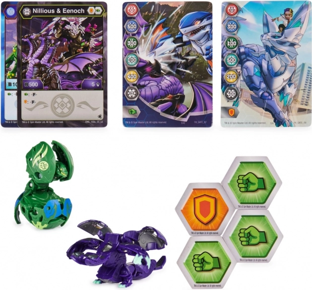 Stijlvol metalen blik in een nieuw design, met ruimte voor tot wel 6 Bakugans, 2 decks van 40 kaarten en 12 Baku-tokens. De set bevat 1 metalen blik met deksel, 1 exclusieve Bakugan, 1 mysterieuze Bakugan, 4 Baku-tokens, 2 karakterkaarten en 2 Gate-kaarten. Geschikt vanaf 6 jaar.
