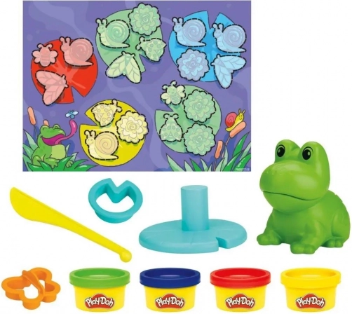 Stap de wereld van creativiteit binnen met de set Play-Doh Starters kikker – kleuren leren. Kinderen drukken een lange, grappige tong uit de kikker, maken vlinders, slakken en vliegjes met de vormpjes en leren op kleur sorteren op de meegeleverde onderlegger. Inclusief 4 potjes Play-Doh klei en veilige tools voor kleine handjes.
