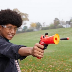 Krijg de rode Flint-Knock met hameractie en een blauwe blaster met schuifspansysteem. Ideaal voor teamspel of het afwisselen van speelstijlen.