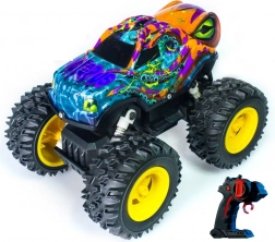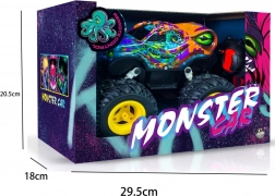 RC Monsterauto 2.4G met lichteffect beweegt naar links, rechts, vooruit en achteruit. Maximale snelheid 5 km/u. Frequentie 2405 MHz – 2475 MHz, maximaal radiofrequent vermogen 5 mW, bereik van de afstandsbediening 20 m.