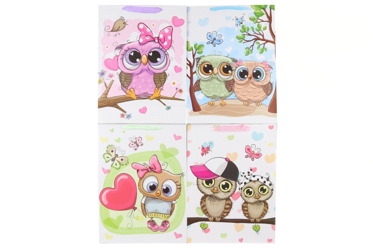 Stijlvolle cadeautas met een schattig uilenmotief, perfect voor elke gelegenheid. Biedt praktische afmetingen van 31 × 42 × 12 cm, is stevig en duurzaam, ideaal voor cadeaus van middelgrote tot grotere afmeting en maakt elke feestelijke verpakking extra mooi.