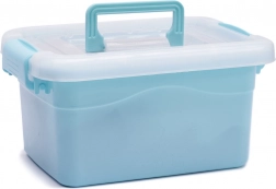 De inhoud berg je eenvoudig op in een stevige box met deksel en handgreep, zodat er niets kwijtraakt.