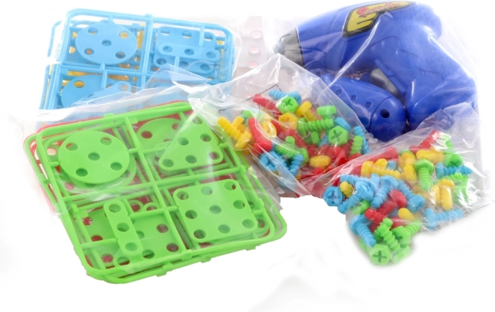 Leuke en creatieve schroefconstructieset met boor voor kleine bouwers. De set bevat 144 onderdelen, een kunststof basisplaat, een kinderboormachine op batterijen en een schroevendraaier. Ideaal voor de ontwikkeling van de fijne motoriek, logisch denken en fantasie. Geschikt voor kinderen vanaf 3 jaar.