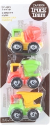 Deze set bouwvoertuigen bevat drie verschillende autootjes waarmee kinderen hun eigen bouwplaats kunnen creëren, thuis of onderweg. Dankzij de compacte afmetingen liggen ze goed in de hand en zijn ze ideaal voor de eerste motorische vaardigheden.