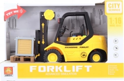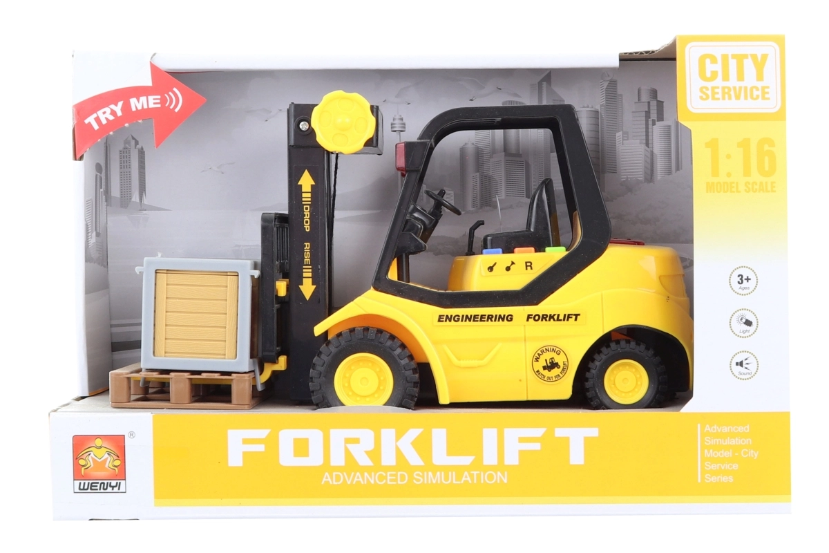 Een leuke en realistische batterij-aangedreven vorkheftruck op schaal 1:16 die elke kleine bestuurder zal verrassen. Na het indrukken van een knop licht hij op en maakt geluiden; AG13/LR44-batterijen zijn inbegrepen. Geschikt voor kinderen vanaf 3 jaar.