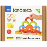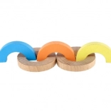 Regenboogbogen en halve cirkels kunnen worden gestapeld tot torens, bruggen en balansuitdagingen. Kinderen ontwikkelen zo concentratie, stabiliteit en ruimtelijk waarnemen.