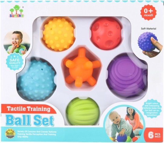 Deze kleurrijke set sensorische ballen biedt baby’s vanaf de geboorte een veilige en leuke manier om texturen, vormen en kleuren te ontdekken. De ballen zijn aangenaam zacht, ideaal voor kleine handjes om te grijpen en ondersteunen de natuurlijke ontwikkeling van de tastzin en coördinatie.