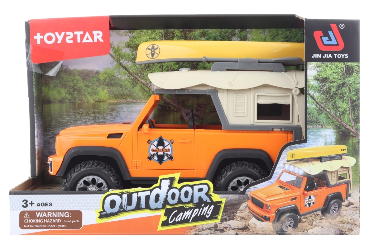 Kunststof terreinwagen op batterijen met een boot. De auto licht op en maakt geluid. Werkt op 3LR44-batterijen (inbegrepen). Afmetingen van de auto ca. 22 × 15 cm. Afmetingen van de verpakking ca. 28 × 18 × 12,5 cm. Leeftijd 3+