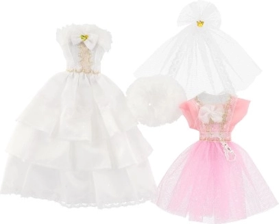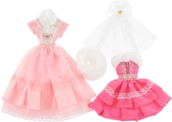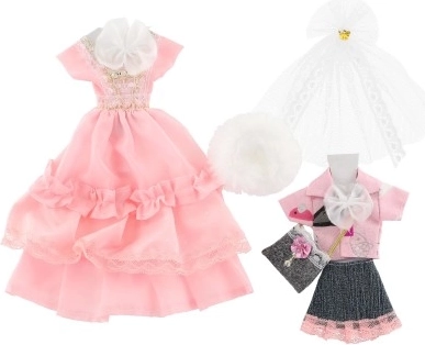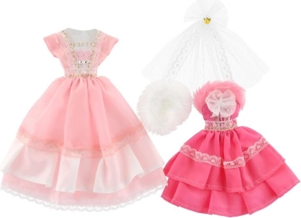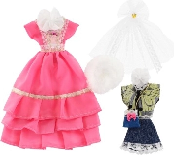 Maak van je pop een mode-icoon met onze set kleertjes. Bevat twee soorten prachtige jurken met elegante kanten details, aangevuld met handige accessoires voor verschillende gelegenheden. Geweldige keuze voor alle kleine modeontwerpsters!