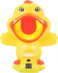 De eend reageert op elke succesvolle treffer door deze te tellen. Ideaal om kinderen te motiveren hun precisie te verbeteren.