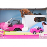 Ontdek een complete speelserie voor creatief spel: een auto voor poppen met aanhanger en paard. Dankzij het grote formaat en duurzame kunststof is de set geschikt voor dagelijks gebruik, zowel binnen als buiten. Kinderen kunnen het paardje gemakkelijk inladen, naar wedstrijden of op uitje gaan en zo hun fantasie en fijne motoriek ontwikkelen.
