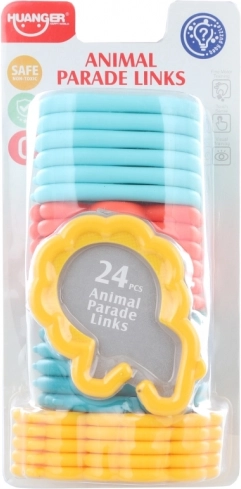 Een leuk en praktisch accessoire voor de allerkleinsten: een kunststof koppelketting met diermotieven. Ideaal voor de kinderwagen, autostoeltje of het ledikant. De set bevat 24 schakels voor eenvoudig koppelen en creatief spelen. Geschikt vanaf 0+, gemaakt van duurzaam kunststof en perfect voor de ontwikkeling van de fijne motoriek en de zintuiglijke waarneming.