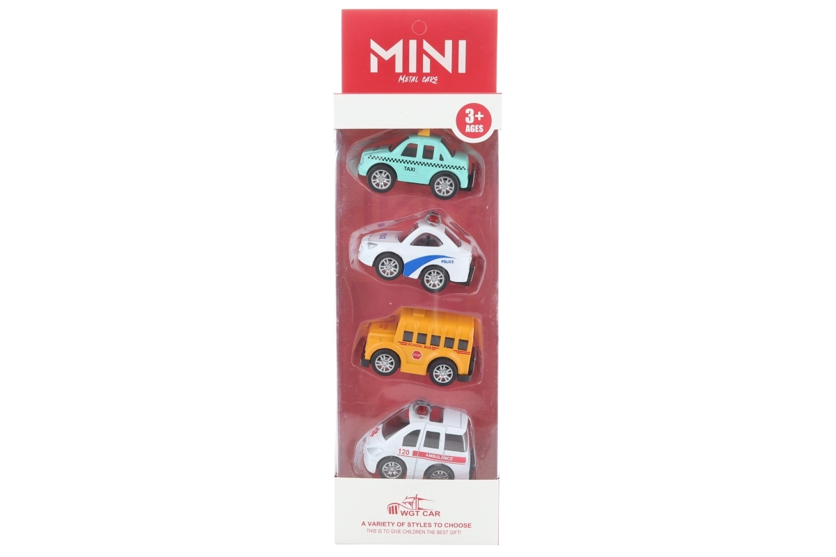 Ontdek het plezier voor kleine racers met een set metalen autootjes. De verpakking bevat 4 duurzame autootjes van circa 6,5 cm lang, ideaal voor kinderhandjes. Een geweldige keuze voor speelse fantasie, verzamelen en racen, geschikt voor kinderen vanaf 3 jaar.