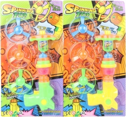 Leuk batterij-aangedreven kinderspeelgoedpistool met propellers zorgt voor uren actie en plezier. In de verpakking vind je het pistool, 3 vliegende propellers en een gekleurde tol. Eenvoudige bediening, AG13-batterijen inbegrepen en veilig speelplezier voor kinderen vanaf 3 jaar.