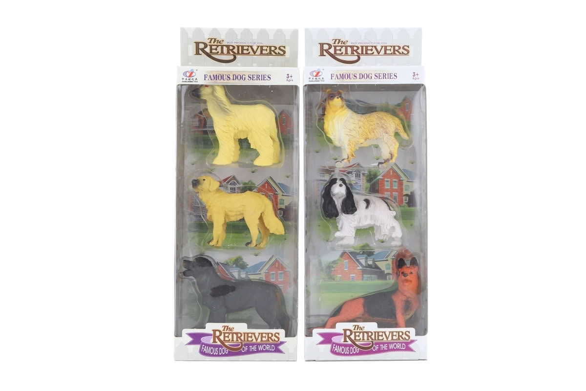 Schattige set met 3 plastic hondjes van ongeveer 7,5 × 7 cm (afhankelijk van het type). Ideaal voor kinderen vanaf 3 jaar om mee te spelen, te verzamelen en de fantasie te stimuleren.
