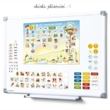 De magnetische kalender heeft een magnetisch bord van 420 x 297 mm, dat eenvoudig aan de koelkast of een ander metalen oppervlak kan worden bevestigd. De set bevat 114 magneten die creativiteit en plezier bieden aan uw kinderen:
