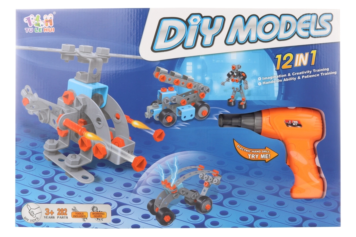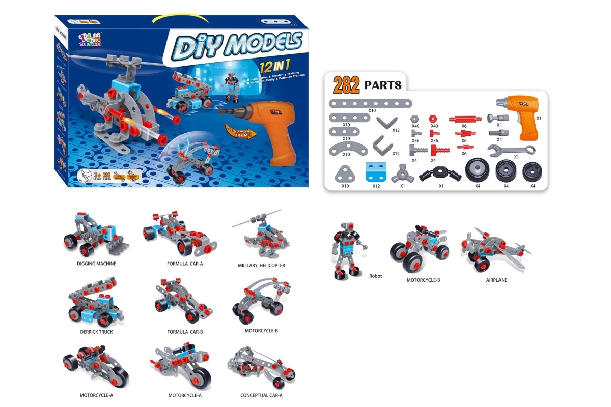- Rijke uitrusting: 282 stukjes, kinderboormachine, schroevendraaier, handleiding