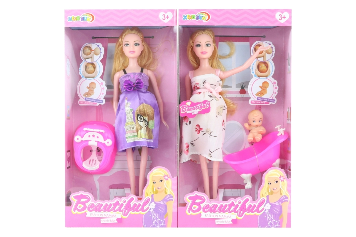 Deze gedetailleerd uitgewerkte zwangere pop biedt kinderen een unieke ervaring van gezinsspel. In de buik van de pop bevindt zich een klein baby’tje dat kan worden verwijderd om vervolgens te verzorgen. De set bevat ook een universeel krukje/badje, wat de speelmogelijkheden vergroot en de creativiteit stimuleert.
