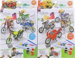 - 3D kartonnen motoren om in te kleuren, 6 kleuren, penseel, palet