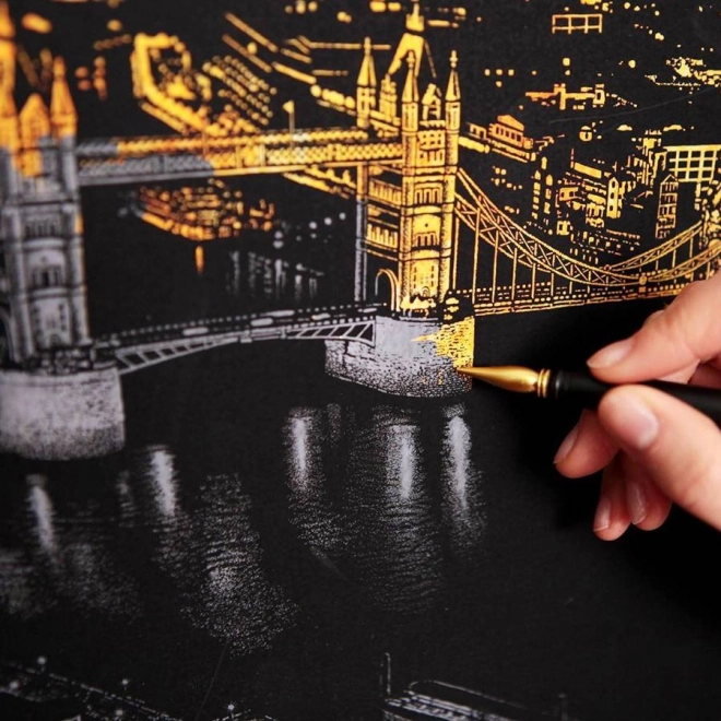 Ontdek de magie van de krastechniek: onder de zwarte laag schuilt een gouden ondergrond die van elke vrijgekraste streek een contrasterend, elegant effect maakt. Het motief van het iconische Sydney Opera House in nachtelijke uitvoering zal zowel beginners als gevorderden bekoren en het eindresultaat wordt een originele decoratie.