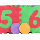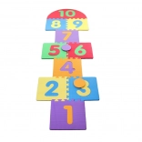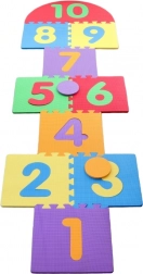 Schuimpuzzel in de vorm van een hinkelbaan. Bevat 10 stukjes. Afmetingen van de verpakking ca. 56 x 30 x 6,5 cm. Leeftijd 3+