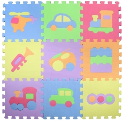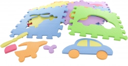 Deze set kleurrijke schuimrubberen puzzels biedt kinderen niet alleen een comfortabele en veilige onderlaag, maar ook een leuke manier van leren. De uitneembare vormen (voertuigen en andere objecten) bevorderen de fijne motoriek, het herkennen van vormen en kleuren en de ontwikkeling van de verbeelding tijdens het puzzelen.