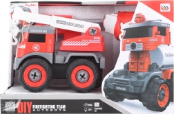 Ontdek een slimme speelgoedset die fijne motoriek en fantasie ontwikkelt: kinderen monteren de schroefbare brandweerauto eenvoudig met de meegeleverde schroevendraaier of boormachine. De motor kan uit de boormachine worden gehaald, in de auto worden geplaatst en zo ontstaat een voertuig met afstandsbediening dat vooruit en achteruit rijdt. Dankzij de licht- en geluideffecten is het spel nog realistischer.