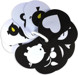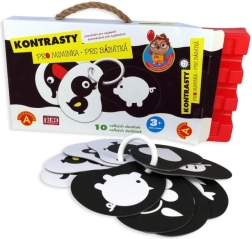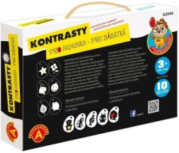 De set Alexander Contrast biedt eenvoudige en effectieve visuele stimulatie voor de allerkleinsten. Rond de leeftijd van 3 maanden nemen baby’s het beste hoog contrast en scherpe lijnen waar, wat helpt bij de ontwikkeling van gezichtsscherpte en concentratie. Stevige kaartjes met opvallende motieven (vormen, dieren, symbolen) trekken de aandacht en stimuleren de eerste visuele volgbewegingen.