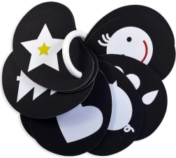Zwart-witte motieven met sterke contouren helpen baby’s beter te focussen en hun visuele waarneming te ontwikkelen al vanaf 3 maanden.