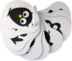 Dankzij de kunststof ring blijven de kaartjes bij elkaar, zijn ze gemakkelijk mee te nemen en kan de baby ze veilig vastpakken. Het zachte maar stevige papier voelt prettig in de hand en is bestand tegen veelvuldig bekijken. Het spel is ontwikkeld onder deskundige garantie van psychologe Alexandra Petrovska van de Universiteit van Warschau en maakt deel uit van de populaire serie Uiltje, wijze koppie.