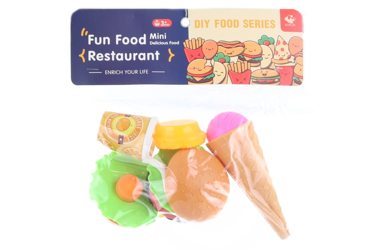 - Inhoud van de set: uit elkaar te halen hamburger, ijsje in hoorntje, taart, drankje