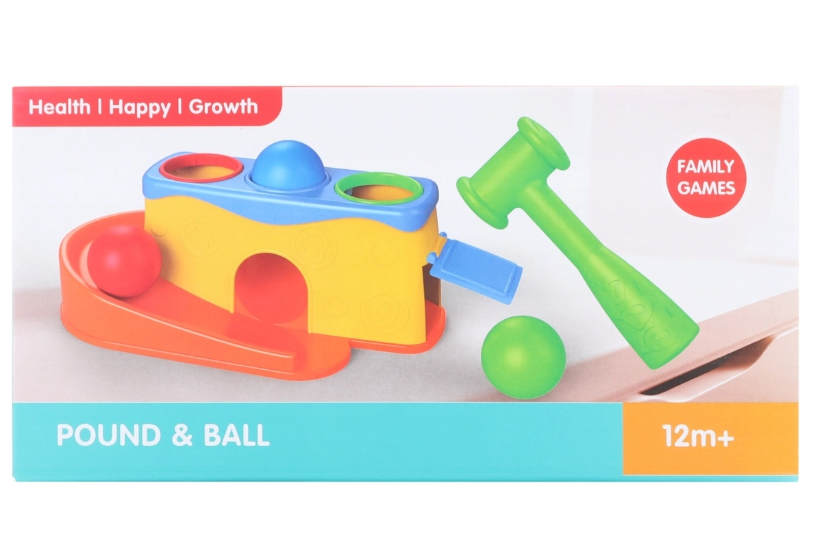 Dit leuke kunststof hamerspel met baan stimuleert de fijne motoriek, oog-handcoördinatie en kleurherkenning. Inclusief 3 balletjes en een hamertje; na een tik rollen de balletjes over de speelse baan. Ideale speelgoed voor de allerkleinsten vanaf 1 jaar.