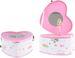 Elegante hartvormige sieradendoos met muziekmechanisme die elke liefhebber van schattige accessoires zal verrukken. Na het opdraaien begint de ballerina binnen te draaien en klinkt er een melodie. Binnen vind je een spiegeltje en ruimte voor kleine schatten. Romantisch design, dansende ballerina en praktische opbergruimte voor sieraden in één.