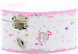 Deze betoverende muzikale sieradendoos in hartvorm is de ideale plek om ringen, oorbellen en kleine schatten te bewaren. Na het opdraaien klinkt er een melodie en begint het kleine ballerinaatje elegant te draaien voor het spiegeltje. Het ontwerp in roze tinten met delicate motieven charmeert zowel kinderen als volwassenen.