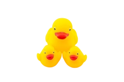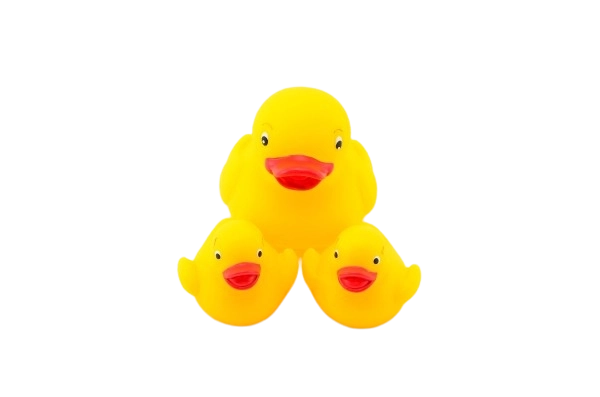 Schattige set van drie rubberen eendjes voor plezier in bad en in het zwembad. Het zachte materiaal voelt prettig aan en is veilig voor de allerkleinsten. Geschikt vanaf de geboorte, eenvoudig te reinigen en ze drijven uitstekend op het wateroppervlak.