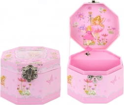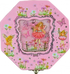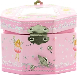 Deze charmante muzieksieradendoos in het roze met sprookjesmotieven is de perfecte plek om ringetjes, oorbellen en andere kleinigheden in op te bergen. Na het draaien aan het sleuteltje beweegt de ballerina sierlijk rond voor het spiegeltje en speelt het doosje een zachte melodie.