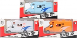 Ontdek plezier onderweg met dit kwalitatieve metalen model van een caravan van 10,5 cm lang. Dankzij de robuuste uitvoering en compacte afmetingen is hij ideaal voor kleine chauffeurs vanaf 3 jaar. Stevige metalen constructie, realistisch design en praktisch formaat voor kinderhanden garanderen uren speelplezier, thuis en onderweg.