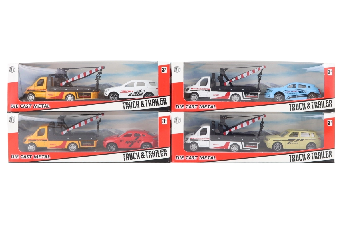 Een realistisch metalen model van een sleepwagen met personenauto dat bestuurders in de dop vanaf 3 jaar zal verrassen. Biedt een stevige metalen uitvoering, 4 kleuropties en afmetingen die ideaal zijn voor kinderhanden. Een geweldige keuze voor creatief spel en verzamelaars.
