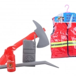 Set voor kleine brandweermannen bevat alles wat nodig is voor rollenspel als redder. Brandweervest, walkietalkie, bijl, breekijzer en brandblusser zorgen voor urenlang plezier voor elke kleine held.