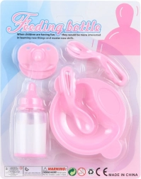 Set accessoires voor poppen ideaal voor rollenspellen als mama, bevat een flesje, fopspeen, bordje en bestek. Perfecte toevoeging voor elke kleine verzorger.