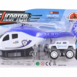 De set bevat een helikopter met vliegwiel van ca. 31 x 11 cm en een autootje van 9,5 x 5,5 cm met vrije loop – alles van kunststof. Afmetingen van de verpakking: 33 x 19 cm. Leeftijd 3+