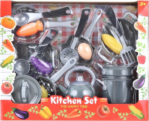 Complete kinderkeukenset voor kleine chefs met alles wat nodig is voor creatief spel. Bevat een steelpan met deksel, pan met vergiet, waterketel, braadslede, koekenpannen, wok en andere accessoires... Meer tonen